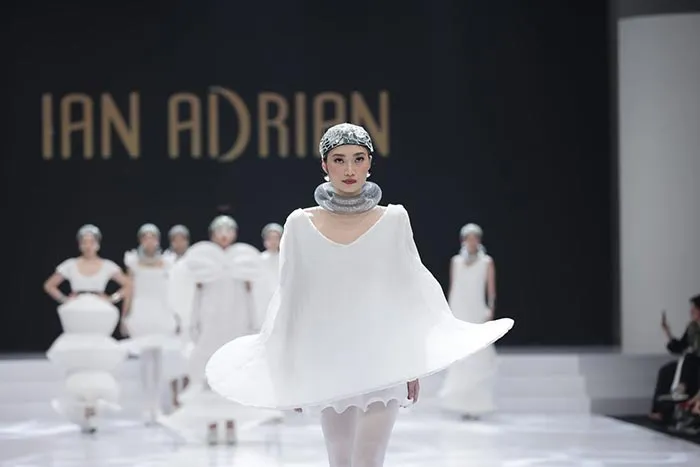 Koleksi busana yang ditampilkan Ian Adriqn, bergaya Avant Garde. Didominasi kain sutra Sengkang (Sulawesi Selatan), chiffon, organdy, satin dan mayoritas berwarna putih dan cream.