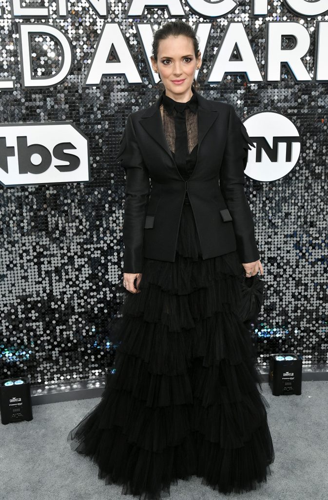 Di tahun 90-an dan awal 2000-an, aktris Winona Ryder sangat dikenal dengan penampilan serba hitamnya saat melenggang di red carpet. Image itu ternyata juga belum hilang hingga kini. Saat hadir di SAG Awards 2020, Winona kembali memilih busana serba hitam koleksi Dior Haute Couture.