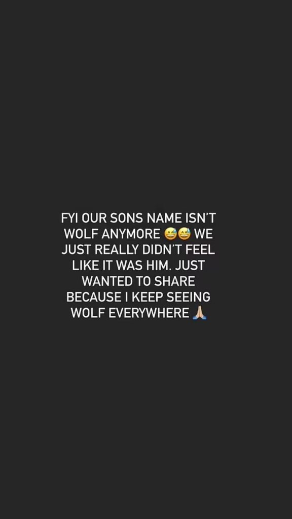 Nama Wolf Webster dipilih untuk nama anak laki-lakinya yang diumumkan dalam sebuah postingan Instagram pada tanggal 11 Februari 2022 lalu.
