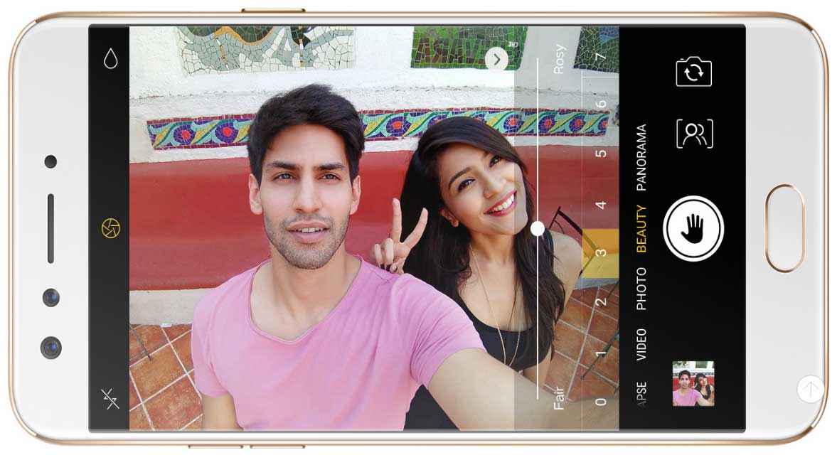 F7 memiliki A.I. Beauty Technology yang dapat mengenali secara presisi sebuah subyek foto, seperti warna kulit, usia dan jenis kelamin. Teknologi ini pun diunggulkan karena bisa memindai 296 titik wajah, sehingga smartphone bisa menyimpan database foto berdasarkan pengelompokan wajah seorang.