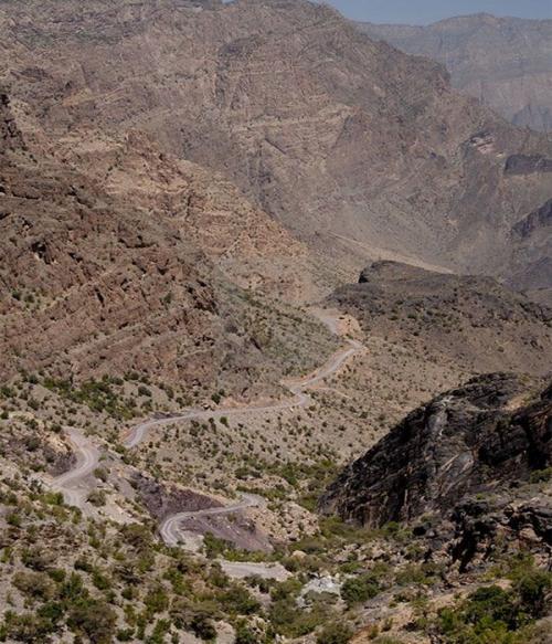 Selanjutnya terdapat pegunungan Hajar yang spektakuler di Oman yang terbentang luas dari ujung Semenanjung Musandam hingga ke Kota Sur, di bagian selatan Muscat.