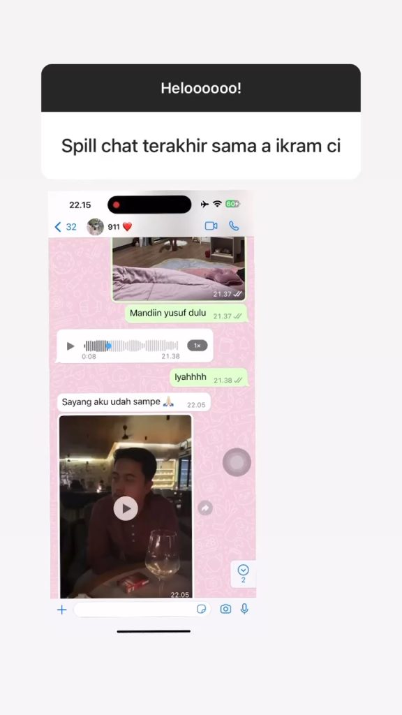 Sang suami pun membalas pesan sang istri, ia menyarankan untuk memandikan Yusuf dengan air hangat. “Mandi pakai air anget, sayang yah? Jangan pakai air dingin. Aku ini di toll, sayang. Maaf pakai voice note yah?” ujar Ikram dalam sebuah pesan suara.