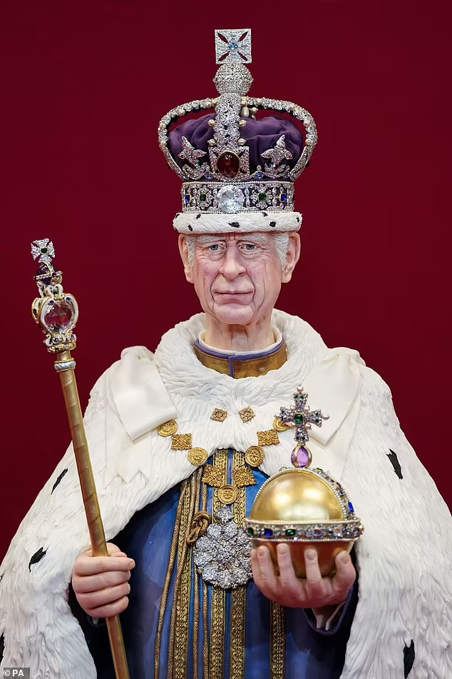 Patung ini bahkan dilengkapi dengan mahkota St Edward berkilauan, yang dihias dari 2.500 kristal. Bagian depan mahkota ada permen yang menyerupai bentuk batu ruby raksasa, sementara bagian belakang ada permen seperti berbentuk safir.