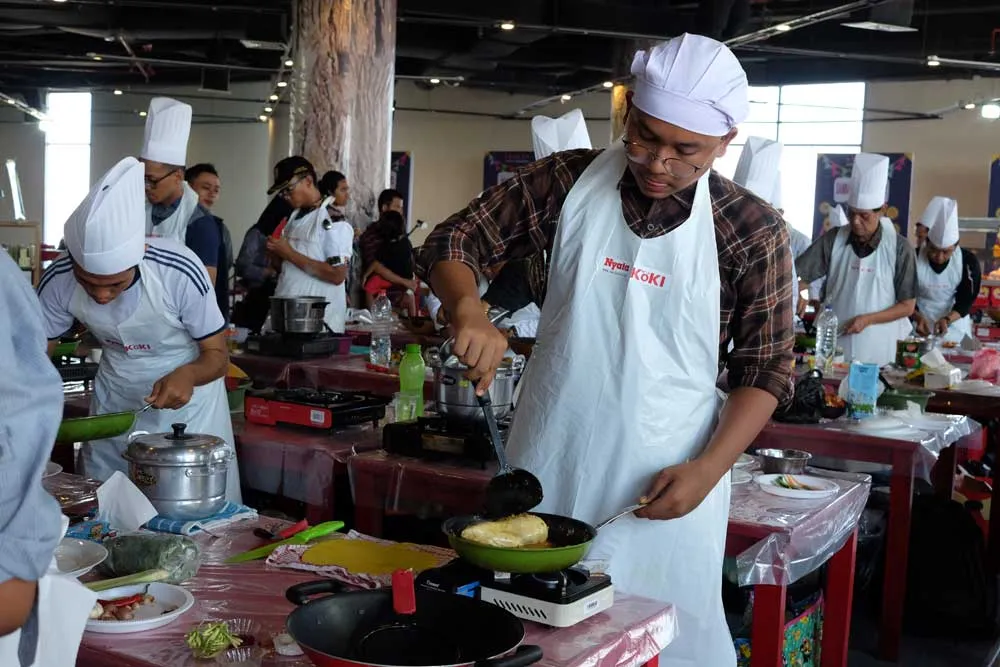 Acara Cooking Competition sendiri mengambil tema masakan nusantara, untuk menu yang dilombakan. Adrian, peserta asal Surabaya misalnya, memasak menu ayam singgah khas Padang.
