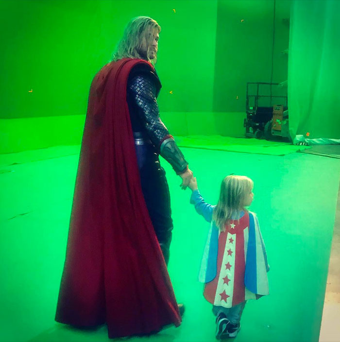 Dalam sebuah wawancara di ABC News, Chris Hemsworth bercerita tentang anak-anaknya, yang suatu ketika berkunjung ke set Thor: Ragnarok (2017). Setelah mereka tahu bahwa Hemsworth tidak benar-benar melawan monster, mereka tidak mau menggunakan kostum God of Thunder itu untuk pesta Halloween.