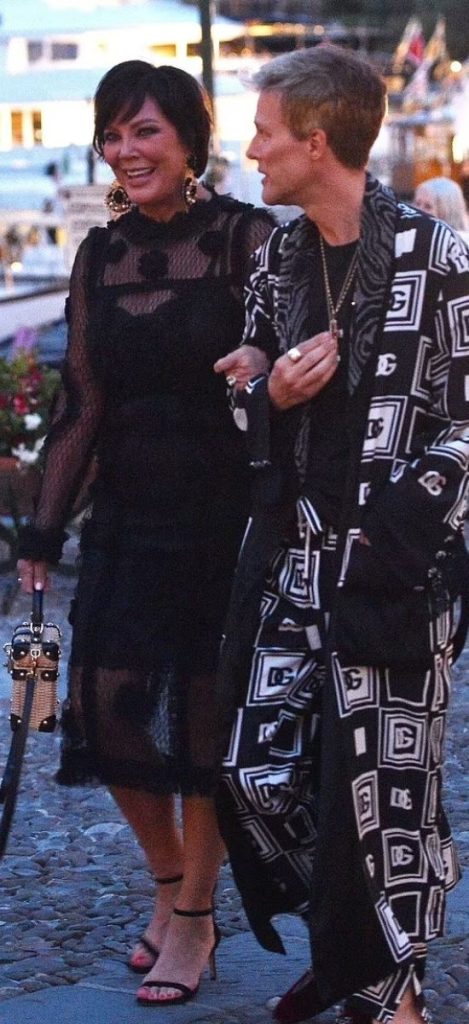 Lalu ibu mereka, Kris Jenner memakai gaun jala yang dipadukan dengan sepatu hak bertali hitam. Sepanjang acara ia terlihat bahagia dan tersenyum setiap saat.