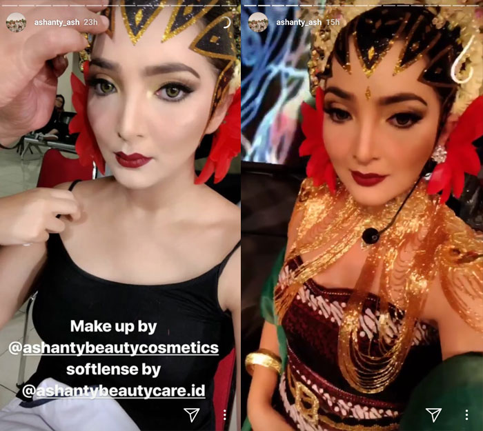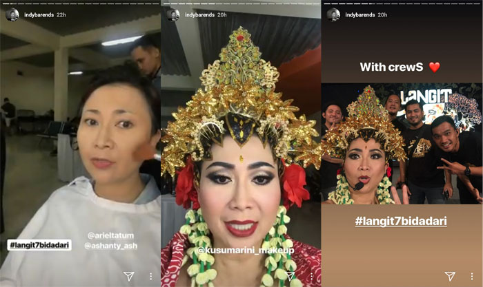 Presenter sekaligus penyiar radio ini berperan sebagai bidadari berselendang ungu. Melalui Instagram Story, ia memperlihatkan keseruan proses make up sebelum acara dimulai.