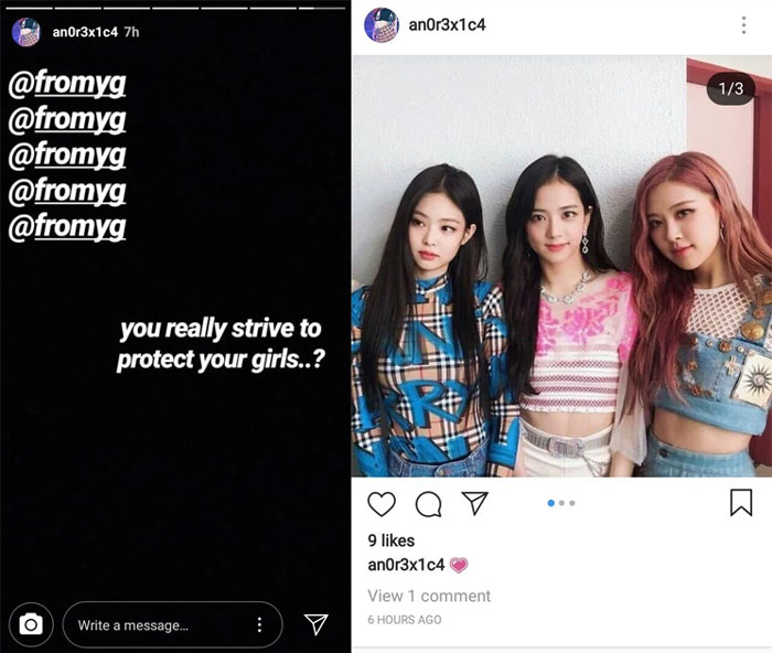 Ia juga tak segan untuk mention akun milik CEO YG dengan kalimat menantang, “@fromyg @fromyg @fromyg @fromyg @fromyg you really strive to protect your girls..?,” serta dengan sengaja mengunggah foto Blackpink tanpa Lisa.