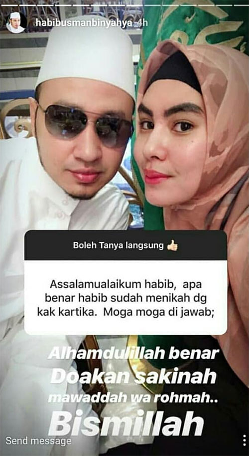 Tidak hanya membenarkan kabar itu, tapi Habib Usman juga meminta doa untuk pernikahannya dengan Karput. “Alhamdulillah benar Doakan sakinah mawaddah wa rohmah.. Bismillah,” jawab Habib Usman seraya meminta doa.