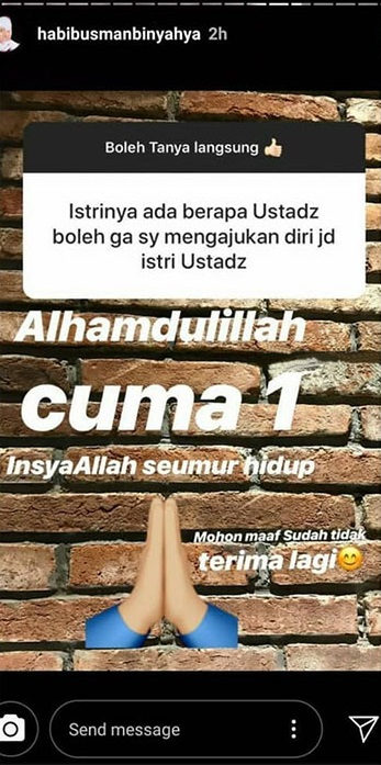 Dengan memanfaatkan fitur question di Instagram, Habib Usman menjawab pertanyaan dari followers-nya.