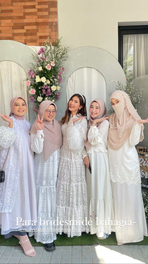 Serunya lagi, Larissa menunjuk beberapa rekan terdekatnya sebagi bridesmaids. Seperti yang diunggah pada Instagram Story salah satu pengantar pengantin wanita @apriliaawiidyaa. Para bridesmaid kompak memakai busana putih dengan aksen berwarna krem. Empat sahabat yang dipilih untuk menemani Larissa saat itu ada Aprilia, Molly, Ensa, Cecilia, dan juga Tina.
