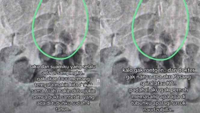 Dari foto rontgen yang ia unggah, nampak sebuah benda asing berbentuk mirip jarum, yang ia tandai dengan lingkaran warna hijau. Stevie menduga bila itu adalah santet, mengingat selama ini ia tak pernah memasukkan apapun ke dalam tubuhnya.