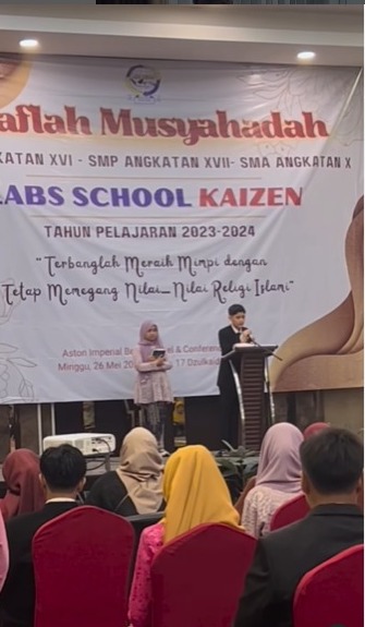 1. Pesta kelulusan King Faaz ini digelar di salah satu hotel mewah di kawasan Bekasi. Terlihat Sonny Septian dan Fairuz A Rafiq bangga menyaksikan anaknya tampil di atas panggung untuk mendapatkan medali kelulusan.