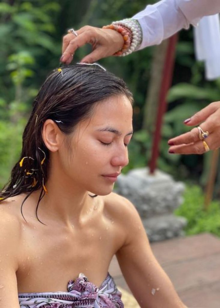 Pevita Pearce membuat kehebohan, setelah dirinya kedapatan melakukan ritual dat Bali dan diposting di Instagram, Rabu (16/2) lalu. Aktris pemeran Dinda di film 5 CM itu tampak khusyuk menjalani ritual adat yang dilakukan di suatu tempat. Sembari mengunggah foto, dia menuliskan ungkapan hatinya dalam bahasa Inggris, yang artinya: