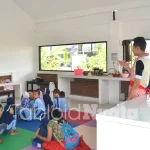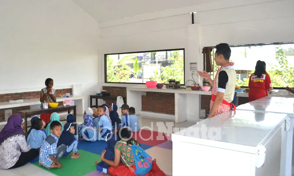 - Siswa siswi SMA SPI memberikan pengajaran kepada pengunjung TK membuat waffle
