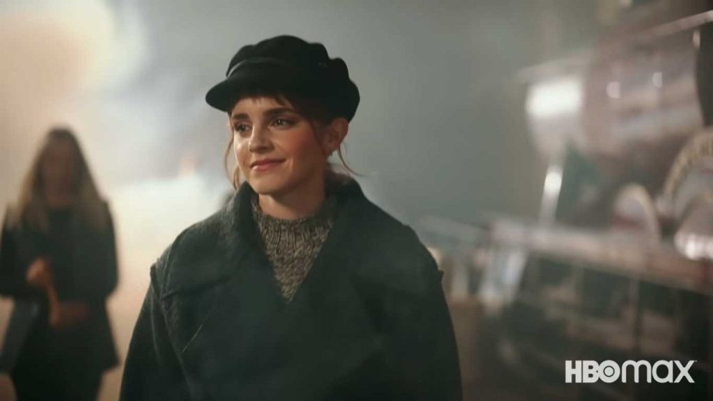 Adegan selanjutnya diisi dengan Emma Watson yang berjalan ke stasiun King’s Cross yang terdapat peron istimewa 9.3/4 sebagai jalur khusus untuk masuk ke dunia sihir Hogwarts.